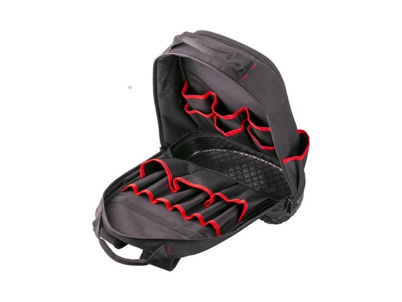 • uspořádání batohu umožňuje mít rychlý přehled o uloženém nářadí a zvýšit efektivitu a rychlost práce na pracovišti, mít volné ruce při přesunu na nepřístupná pracovní místa