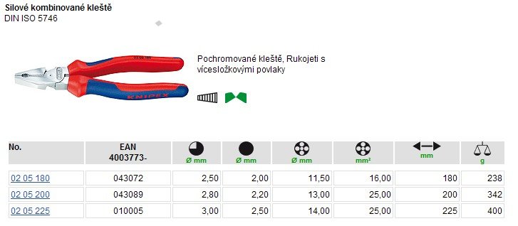 - řezná kapacita: tvrdý drát O 2,5 mm, pianový drát O 2,0 mm, měděný kabel O 11,5 mm (cca 16 mm2)