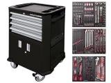 AKCE KW Dílenský vozík P206 (černý) 4 zásuvky + dveře PROFI Line s výbavou 9 modulů