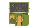 • součástí balení je blok pro ostření sekáčů, dlát a čepelí, blok pro ostření vrtáků, blok pro ostření nožů a nůžek, maticový a šestihranný klíč