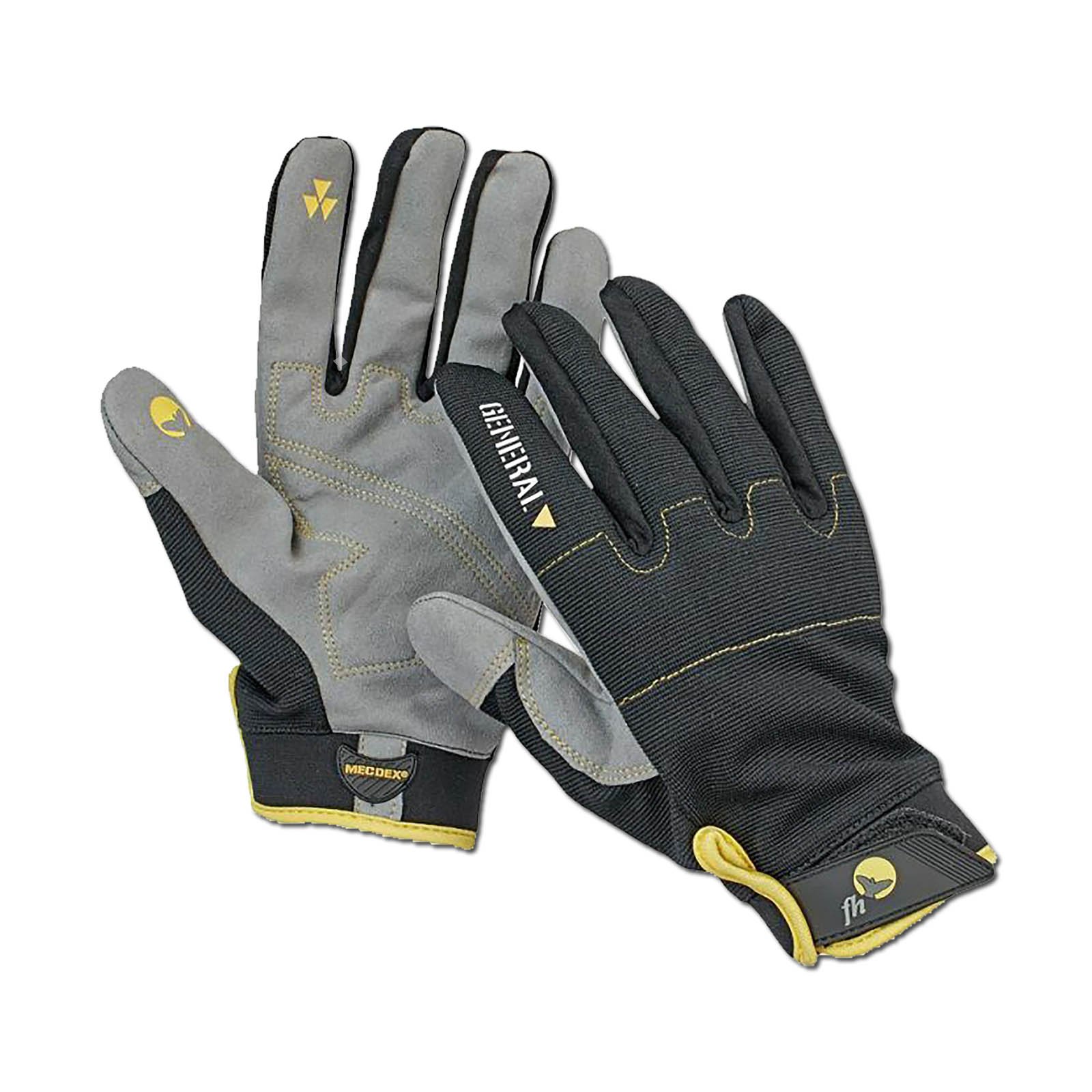 Rukavice z umělého semiše v dlani, Spandexu na hřbetu s chrániči kloubů, se stahovací manžetou na suchý zip a podšívkou v dlani.