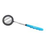 Kulaté teleskopické inspekční zrcátko s LED osvětlením o průměru 50 mm umožňuje viditelnost v těžko přístupných a tmavých místech. Zrcátko se teleskopicky vysouvá v rozmezí 280 - 870 mm. Je vybaveno dvěma LED diodami napájenými dvěma bateriemi CR2032 (jsou součástí balení).Díky kloubu umožňuje širší rozsah nastavení úhlu. Ergonomická protiskluzová plastová rukojeť.