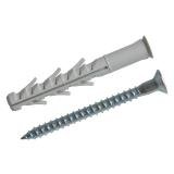 Rámová hmoždinka s vrutem pozidrive určená pro kotvení do betonu, cihel, tvárnic apod. Mechanicky stálá od -40 °C do +120 °C. Kompletní sada obsahuje hmoždinku a vrut, která zaručuje snadnou a spolehlivou montáž, aplikuje se přes upevňovanýmateriál.