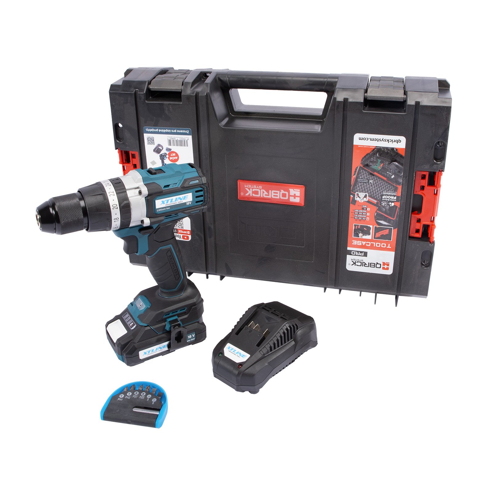 Aku vrtačka s příklepem bezuhlíková 18 V /70 Nm + baterie 2.0 Ah + nabíječka 2.4 A XTLINE