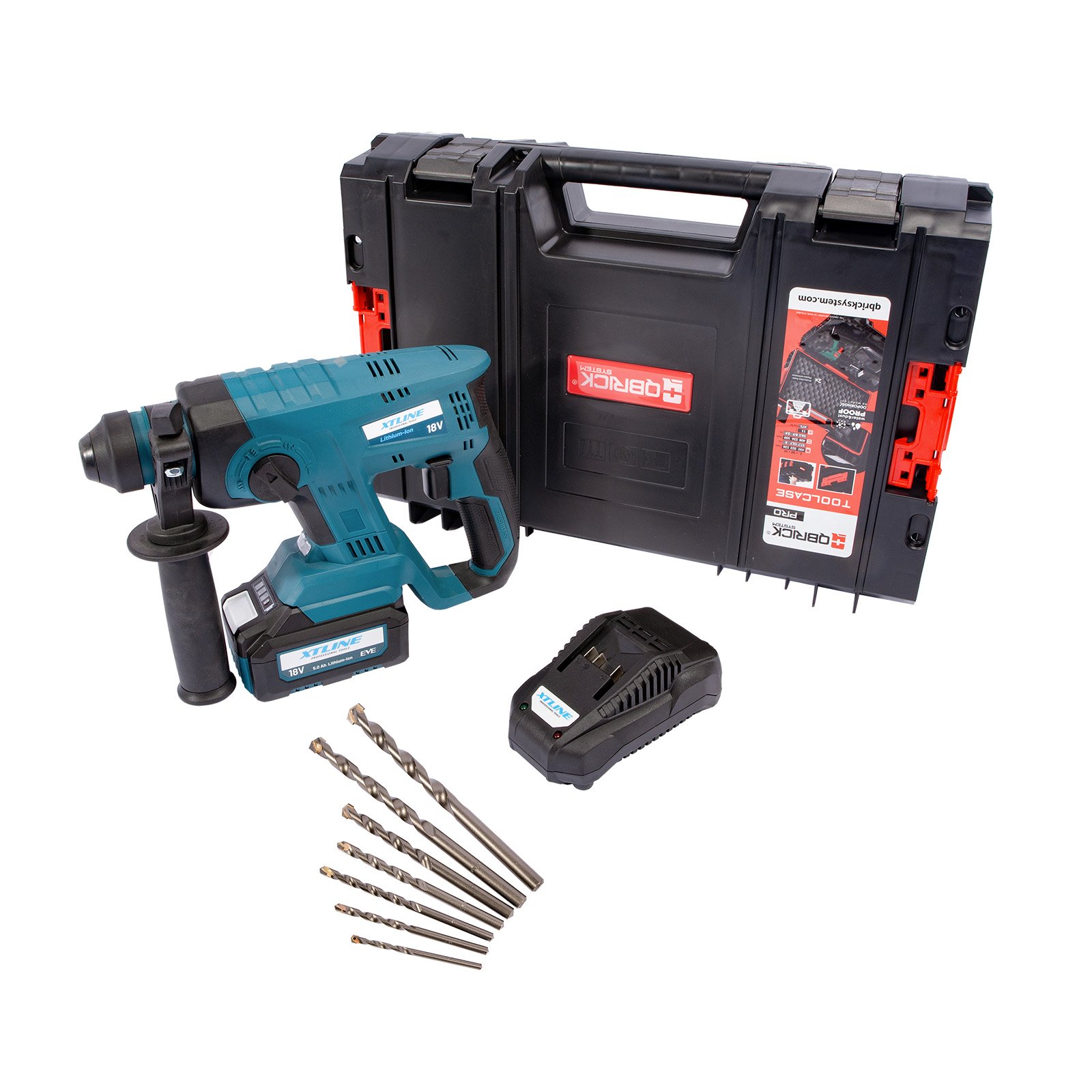 Aku kladivo SDS PLUS + baterie 5.0 Ah + sada vrtáků + nabíječka 3.5 A + kufr XTLINE