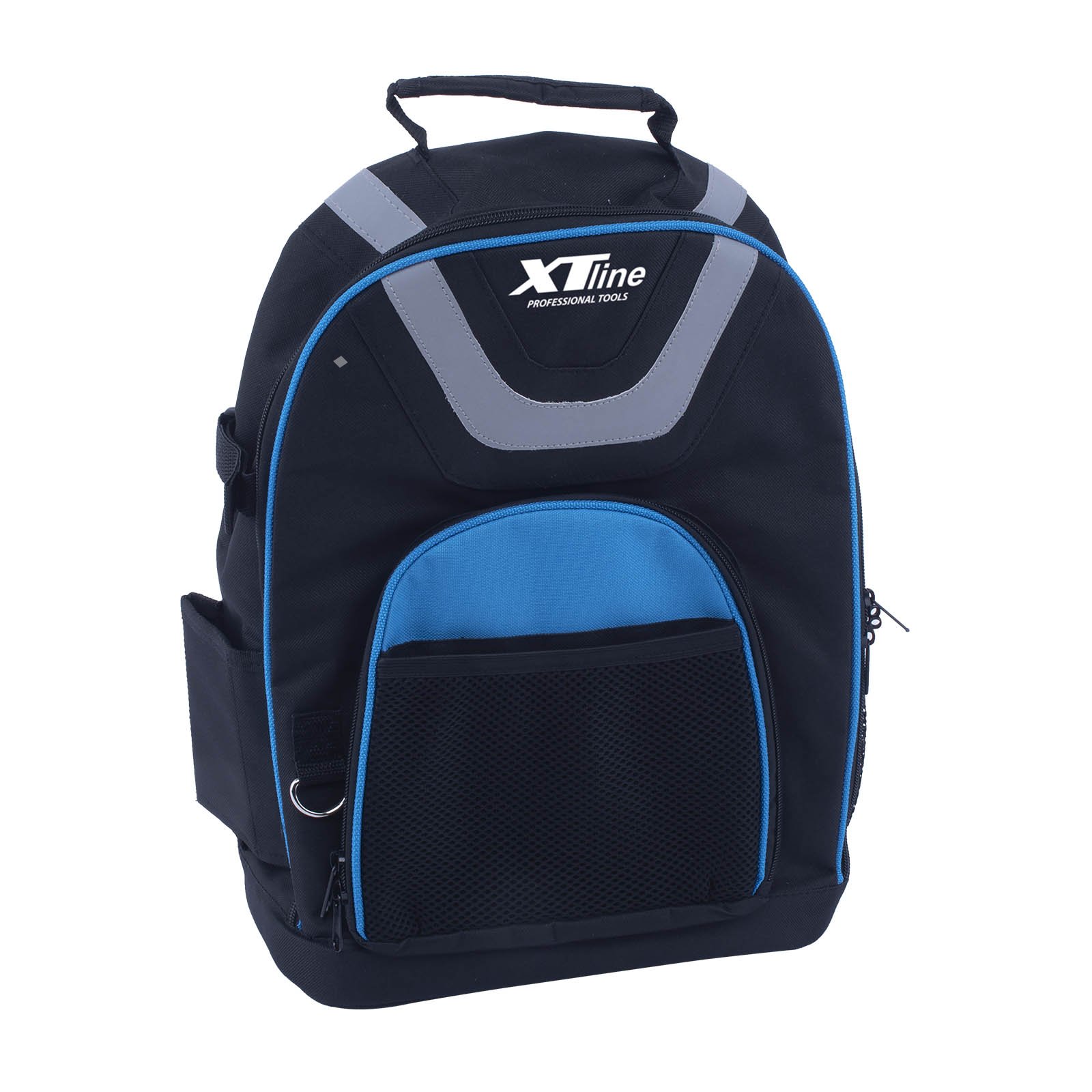 Pracovní batoh má hlavní kapsu s přihrádkou na notebook, nastavitelné zádové popruhy, vyztužené dno a zádová část, stahovací pásek na suchý zip, kovové očko, kapsa na láhev, přední a boční kapsa, kapsa s vnitřním organizérem a bezpečnostníreflexní prvek. Umožňuje pohodlné přenášení nářadí a nástrojů.