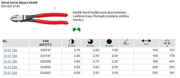 KN-7401180 Kleště štípací boční silové 180mm 6
