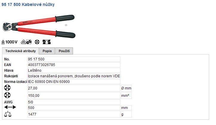 • střihání měděných a hliníkových kabelů, jednožilových a vícežilových