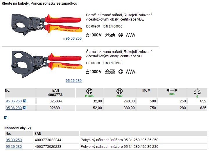 | Kleště kabelové 250mm 1000V VDE princip rohatky se západkou 9536250 |