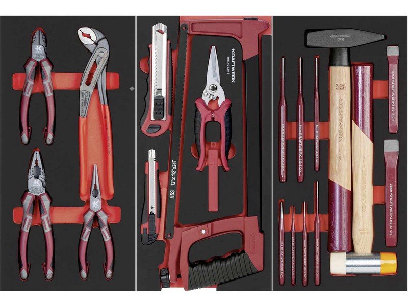 - kleště, pilka, pilníky, kladivo, palička, sekáče, vyražeče