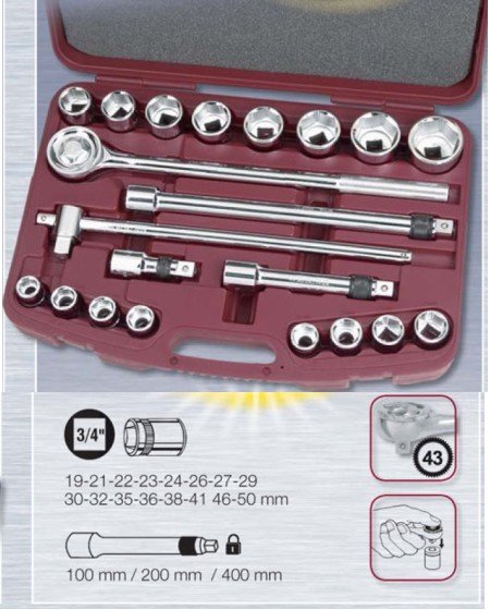 Sada gola 3/4" 19-50mm s příslušenstvím 21ks PROFI Line