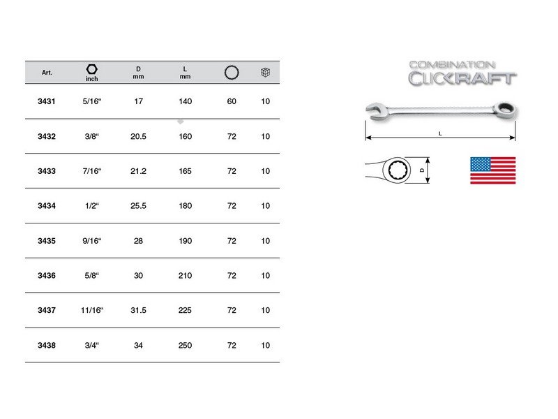 Klíč ráčnový 7/16" CLICKRAFT COMBINATION PROFI Line