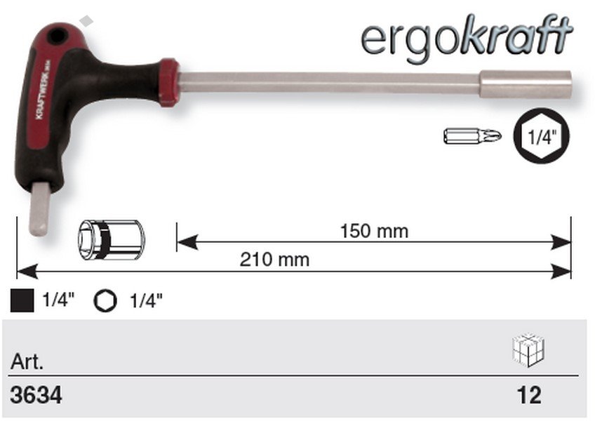 Šroubovák držák bitů 1/4" "T" ergokraft PROFI Line