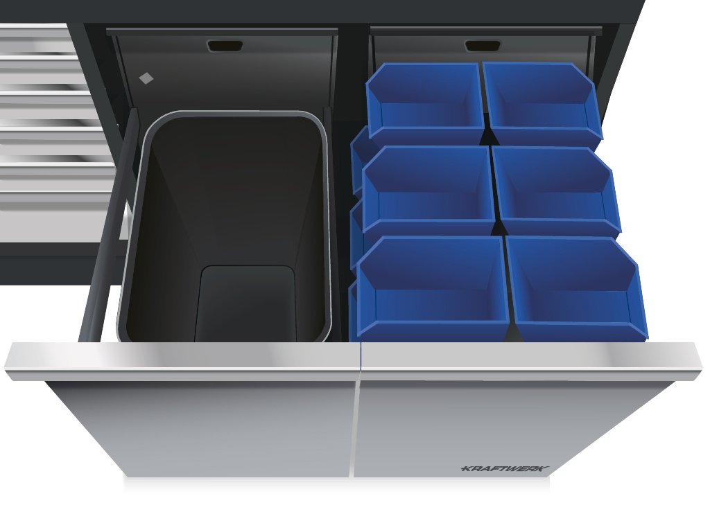- výsuvné dvojdveře pro umístění odpadkového koše či organizérů