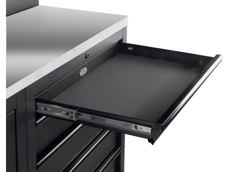 Dílenská stěna 2955x488x2000mm 9 zásuvek, skříňka a vozík, deska NEREZ MOBILIO BLACK dílenský nábytek