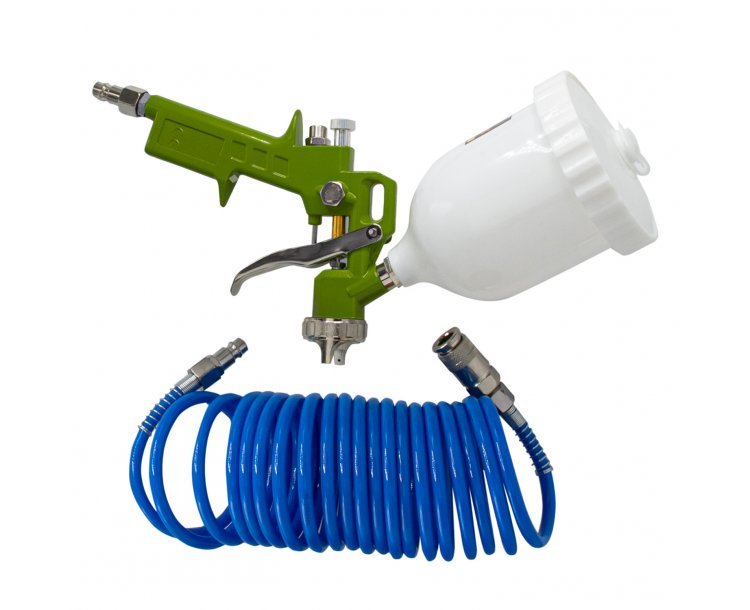 • sada obsahuje pistoli na huštění pneu s manometrem s kvalitní hadící a koncovkou, vzduchovou pistoli, stříkací pistoli s mosaznou tryskou, pískovací pistoli a kvalitní silikonovou vzduchovou hadici