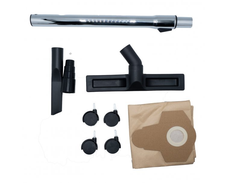• součástí dodávky je odsávací hadice, teleskopická kovová trubka, hubice, hepa filtr, sáčky a kola