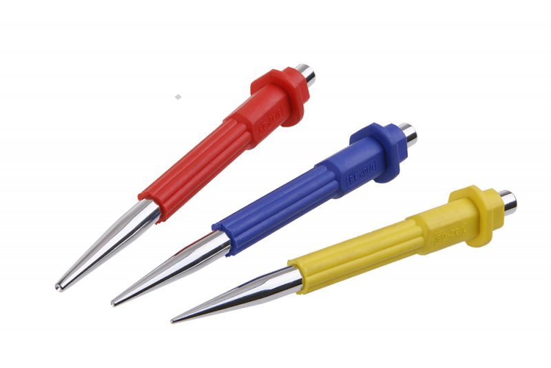 - 3 dílná souprava průbojníků - průměr hrotu 0,8, 1,5 a 2,5mm - vyrobeno z chrom-vanadové oceli - gumová rukojeť