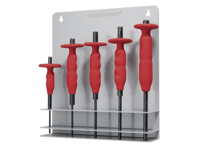 - 5-ti dílná souprava vyražečů - kulatý design s přesně zpevněnými koncovkami - průměr 6 x 260mm, 8 x 300mm, 10 x 300mm, 12 x 300mm, 14 x 300mm - kovový držák lze také namontovat na stěnu