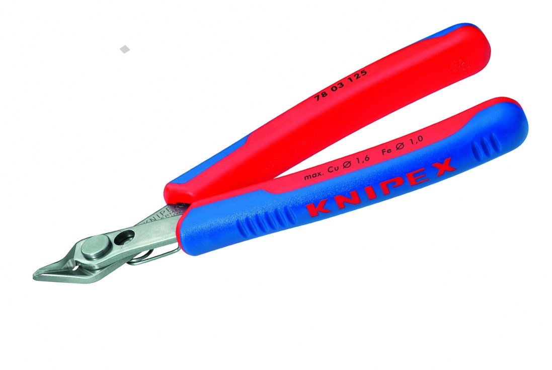 - precizní kleště pro velmi přesné montážní práce a opravy - k ohýbání a stříhání konců drátů - k mačkání a zkracování pod deskou plošných spojů na délku 1,6 mm - průchozí čep kloubu bez vůle - hladce broušené plochy čelistí - pečlivěodstraněné otřepy na hranách - dvojitá pružina s malým třením pro měkké a stejnoměrné otevírání - dobrá ochrana proti korozi - speciální nástrojová ocel ve zvláštní jakosti, kovaná, kalená v oleji - zrcadlově vyleštěná hlava - rukojeti s vícesložkovými povlaky