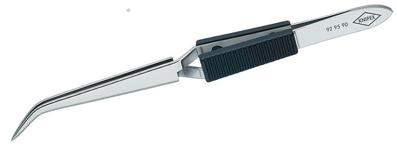 - pro uchopení menších součástek bez tlaku prstů - dobře svírající - poniklováno - pružinová ocel, vysoce pevná - úzké hroty - zahnuté hroty - plochy čelistí jemně ozubené - s povlakem rukojetí