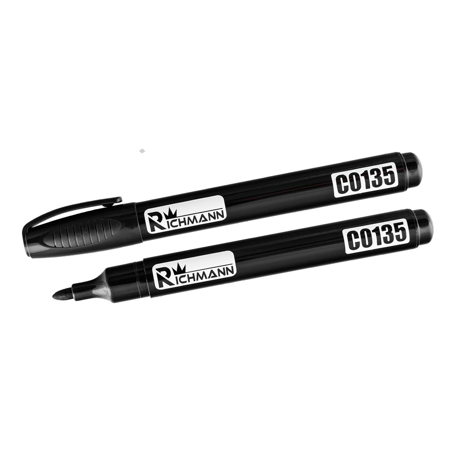 - speciální permanentní značkovač s hrotem 4-6,5mm - k probarvení hrotu je potřeba značkovač protřepat, kuličky uvnitř promísí barvu a stiskem hrotu dovnitř dojde k nasátí barvy a značkovač je připraven k použití - vhodný pro popisy železných konstrukcí, skla, plastů, černých strečových folií atd