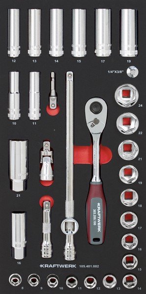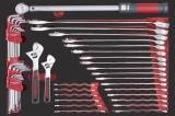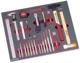 - 173 dílná základní sestava nářadí uložena ve 5 zásuvkách - 5 plně vybavených modulů nářadím řady Basic-Line - uloženo v pěnových EVA vložkách - dílenský vozík MADE IN GERMANY 5 zásuvek - velmi stabilní dvouplášťová konstrukce z ocelového plechu - 5 zásuvek s kuličkovými ložisky, plný výsuv - boční centrální zamykání všech zásuvek cylindrickým zámkem - se dvěma pevnými a otočnými koly